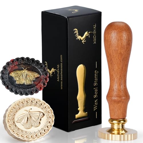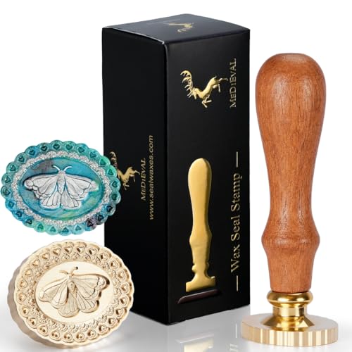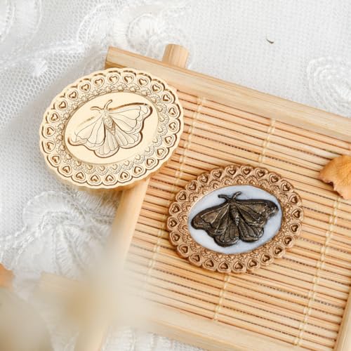 Moth Wax Seal Stamp – Wooden Handle with Brass Metal Head, Defor for Envelope/Bag/Gift Packing, Making Product Tag Arts Crafts DIY