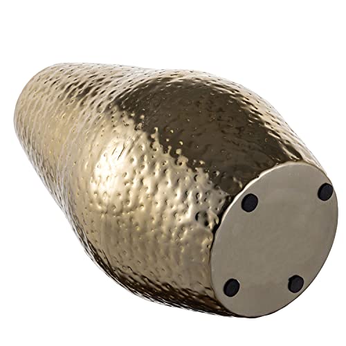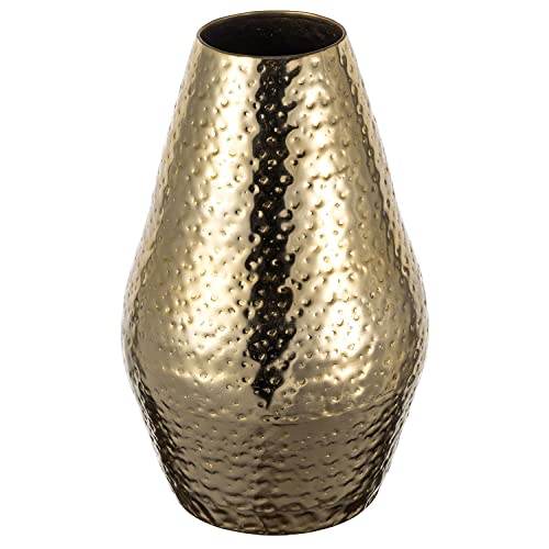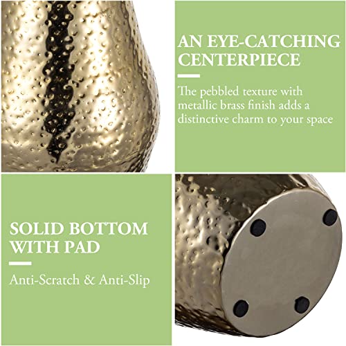 MyGift 10 inch Tall Modern Brass Tone Metal Decorative Flower Vase with Pebbled Texture, Hammered Centerpiece Holder for Floral Arrangements – Handcrafted in India