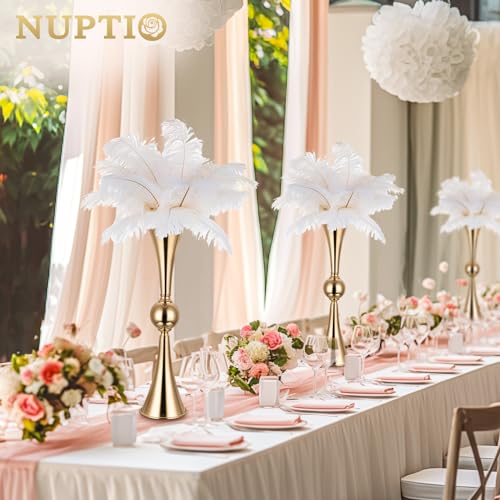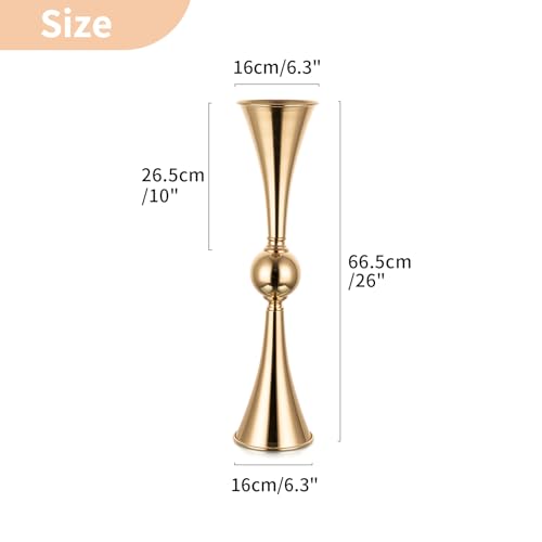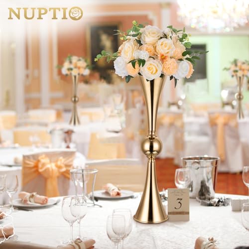 NUPTIO Gold Vases for Centerpieces Wedding – 2 Pcs 26 inch Tall Metal Flower Vase Flowers Stand – Elegant Bulk Weddings Decoration Table Trumpet Centerpiece for Tables