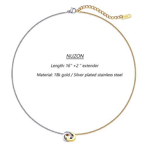 NUZON 2-Tone Interlocking | Sunburst Heart | CZ Evil Eye | Single Pear | Love Heart Pendant Necklace for Women 14K Gold Chain Necklace Protection Prayer Faith Jewelry Gift to Girls