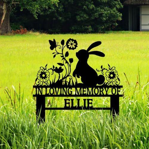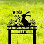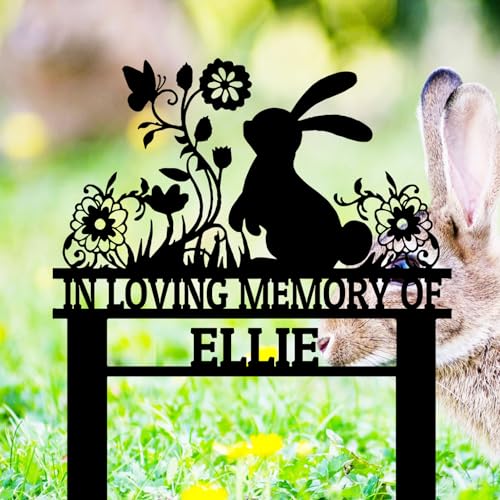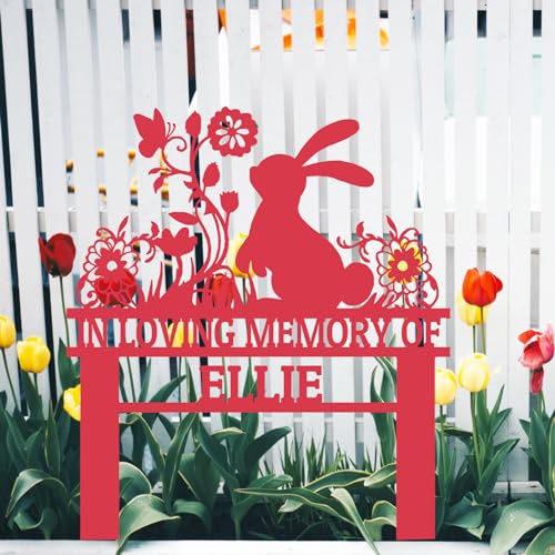 Personalized Flowers Rabbit Memorial Grave Marker Stake, Custom Easter Bunny Memorial Garden Stake, Bunny Rabbit Garden Sign Metal Yard Art, Customized Rabbit Silhouette Sympathy Plaque