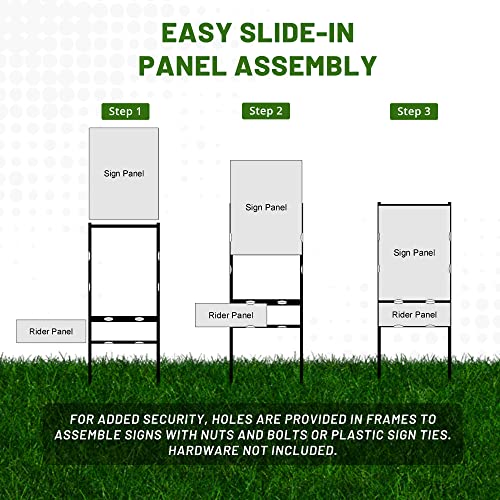Real Estate Yard Sign Metal H Frame (1-pack) with Riders – Steel Sign Holder, 24″ x 18″ Yard Signs, Yard Sign Stand, Open House Sign for Real Estate,(1 Main, 1 Rider, Black)