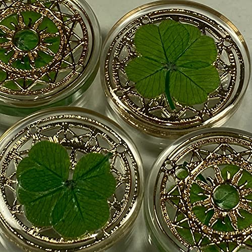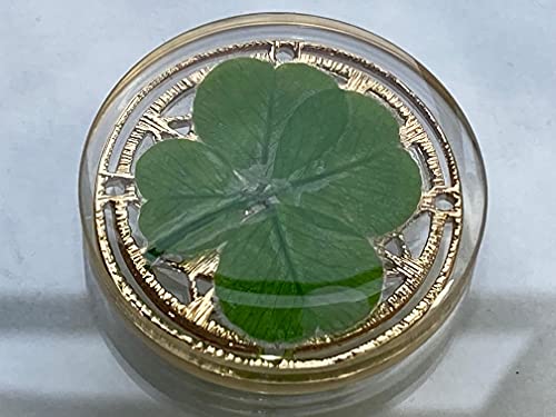 Real Four Leaf Clover Good Luck Pocket Token, Preserved, 1.25”, Including Metal Ornament (Magic Circle of The Sun)