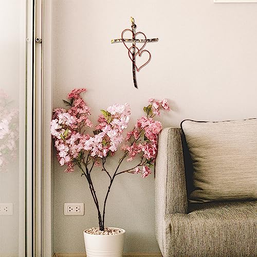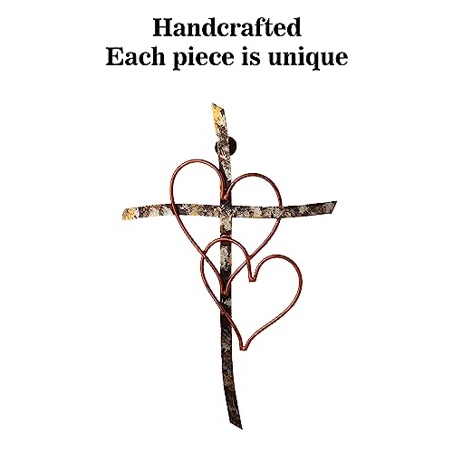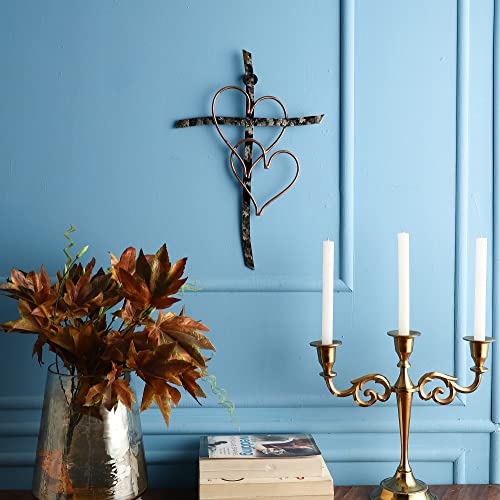 Rely+ Double Heart Wall Cross Metal 13 x 9 inches – Entangled Heart Decorative Metal Wall Cross – Love Gift – Religious Wall Art for Wall Decor – Home Decor- Living Room Decor – Bedroom Decor