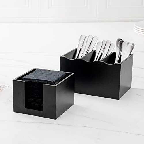 Restaurantware 5.5 x 4 Inch Cocktail Napkin Holder 1 Square Flat Napkin Holder – For Bars Kitchen Tables or Countertops Sturdy Black Bamboo Tissue Napkin Holder Dining Room Decor