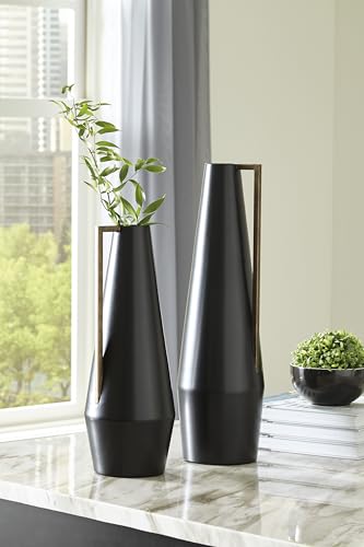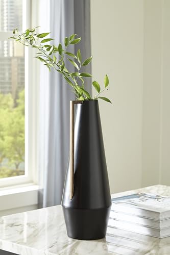 Signature Design by Ashley Pouderbell Small Contemporary Metal Vase, Black & Gold