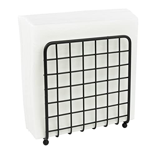 Spectrum Diversified Grid Holder Upright Rustic Paper Dispenser for Kitchen Tables & Countertops, Vertical Napkin Stand with Farmhouse Charm, Small, Black