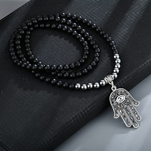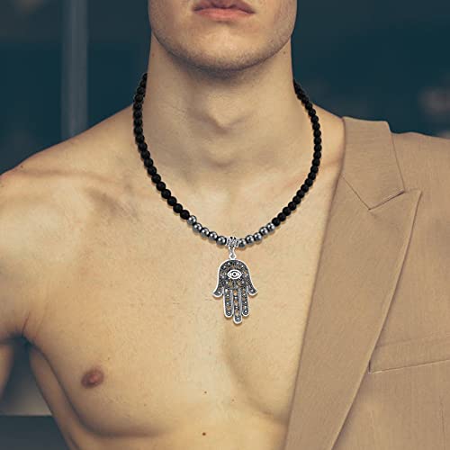 STARCHENIE Natural Stone Bead Necklace for Men,Tiger Eye Healing Crystals Bead Cross Necklace for Men
