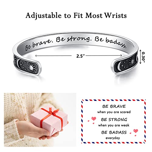 - 【 Meaningful 】 The cuff bracelet reads “Be brave be strong be badass”. It is an absolutely uplifting and meaningful gift for someone who needs a little encouragement. It’s great as a self encouraged bracelet or a positive gift for someone you really cared. Wear this bracelet as your reminder that you are strong, you are brave, you are loved. Perfect as badass women gifts, sober gifts for women, miss you gifts for women, best friend birthday gifts for women, Christmas gifts for women.