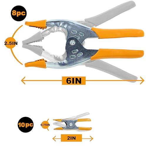 - DIMENSIONS: Wellmax spring clamps come in 2 different sizes: 2 inch and 6 inch The package includes 18pcs, providing a wide range of options for your projects