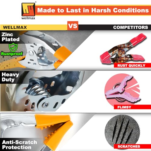 - HEAVY DUTY CONSTRUCTION: Wellmax spring clamps are made from premium quality iron material, and nickel-plated to prevent rust, providing long-lasting durability and dependability